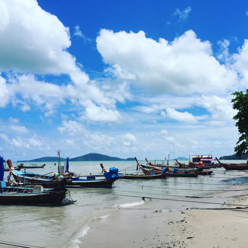 Celle-ci, se fut la grosse déception, d’autant que c’est la première que nous avons visité. Plus proche de la poubelle que de la plage, ce lopin de sable sert plus à amarrer les bateaux qu’a lézarder au soleil. Quand la mer se retire, ça devient même franchement dégueulasse ! il ne reste qu’une épaisse couche de vase jonchée de détritus. Et oui, il n’y a pas que des plages de rêve à Phuket !
