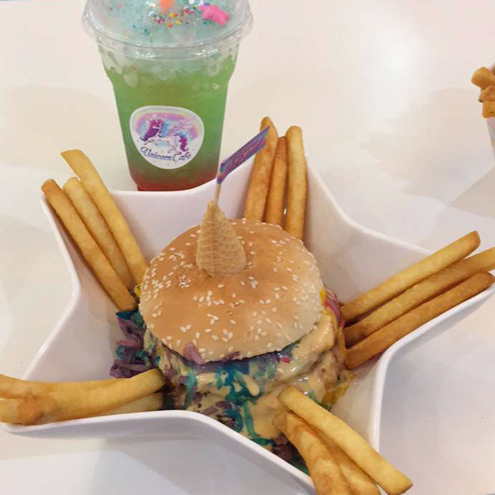 Nous optons pour un thé glacé et un mélange de sodas qui sont franchement délicieux ! Nous commandons deux burgers : un unicorn et un cheese, accompagnés de cheese fries . Et là, c’est le drame ! Loin de moi l’envie de cracher dans la soupe mais il faut dire ce qui est. Autant les cheese fries étaient correctes, autant les burgers font partie du top 3 des burgers les plus infâmes de notre vie. Ils nous sont restés sur l’estomac si bien que nous n’avons rien avalé jusqu’au lendemain.